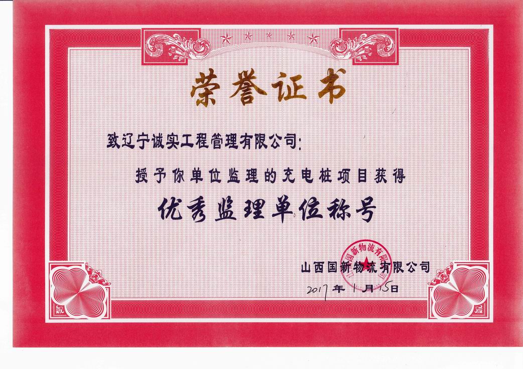 2017年山西國(guó)新物流有限公司優(yōu)秀監(jiān)理單位