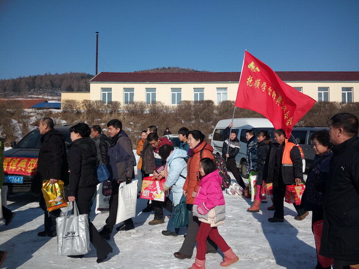 早上9點(diǎn),滿載著大米、白面、豆油等捐助物的7輛汽車從撫順北站出發(fā),一路向東前往清源甘井子小學(xué)。中午10點(diǎn)半,車隊(duì)到達(dá)清源英額門鎮(zhèn),在當(dāng)?shù)貙W(xué)雷鋒典型聯(lián)合會(huì)分會(huì)劉先生的帶領(lǐng)之下,車隊(duì)于11點(diǎn)到達(dá)了清源甘井子小學(xué)。車輛剛剛駛?cè)雽W(xué)校,迫不及待的學(xué)生以及學(xué)生家長們就都出門迎接了出來。找到各自幫扶對象的17位孩子見到了自己的資助人都激動(dòng)得熱淚盈眶。在甘井子小學(xué)高校長的帶領(lǐng)下,大家把資助物品紛紛運(yùn)到了學(xué)校食堂。在食堂把物品授予了這17位孩子,百姓雷鋒們也為他們派發(fā)了新春紅包,并與他們進(jìn)行了親切的交流,目的是鼓勵(lì)這17位家庭困難的學(xué)生好好學(xué)習(xí),勇敢的面對生活。