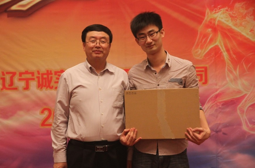 最后一位大獎得主,獲得筆記本電腦一臺,與孫總合影留念